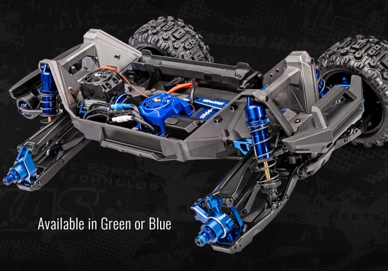 Tamamen monte edilmiş ve Ready-To-Race® olarak kutudan çıkmaya hazır bu canavar, VXL-4s fırçasız güç sistemi, ProGraphix® boyalı gövde ve kablosuz TQi™ radyo sistemi ile donatılmıştır.