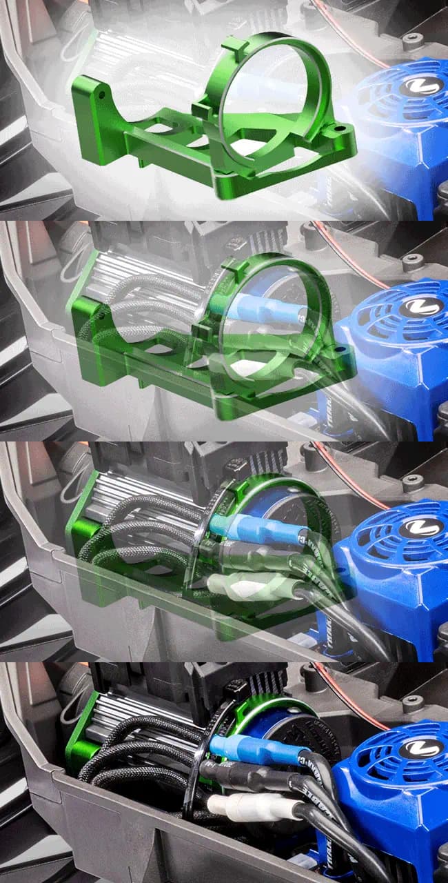 Motor yuvası, 6061-T6 alüminyumdan CNC işlenmiş olup anodize parlak yüzeyiyle hem dayanıklılık hem de şık bir görünüm sunar.