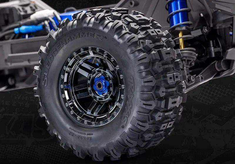 Devasa 5.6” Sledgehammer lastikler, çamur ve enkazı kolayca temizleyen agresif açık blok desenine sahiptir.