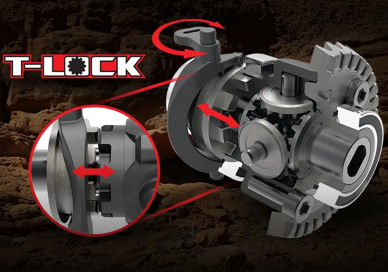 Traxxas, ön ve arka diferansiyelleri kumanda üzerinden uzaktan kilitleme veya açma imkânı sunar. Yeni kılıflı mikro kablolar scale görüntüyü korurken süspansiyon hareketini de kısıtlamaz.