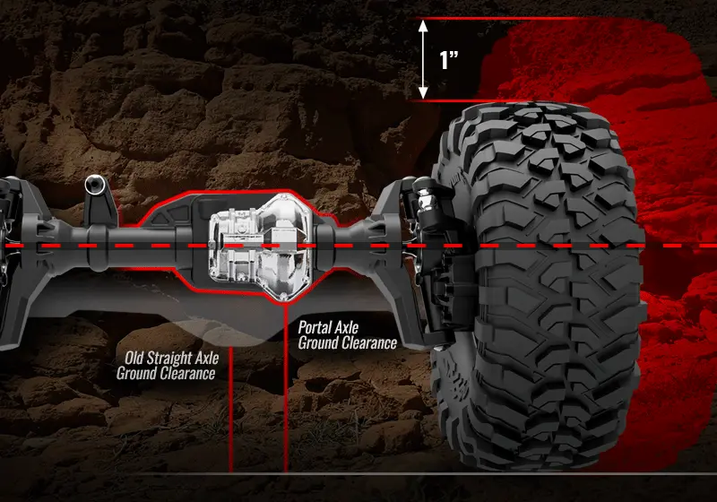 Portal akslar, tekerlerin bağlantı noktasını yükselterek diferansiyel ile yer arasındaki mesafeyi ciddi şekilde artırır. Aynı yerden yüksekliği düz akslarla elde etmek için Pathfinder’daki lastiklerden 2,5 cm daha büyük lastik gerekir.